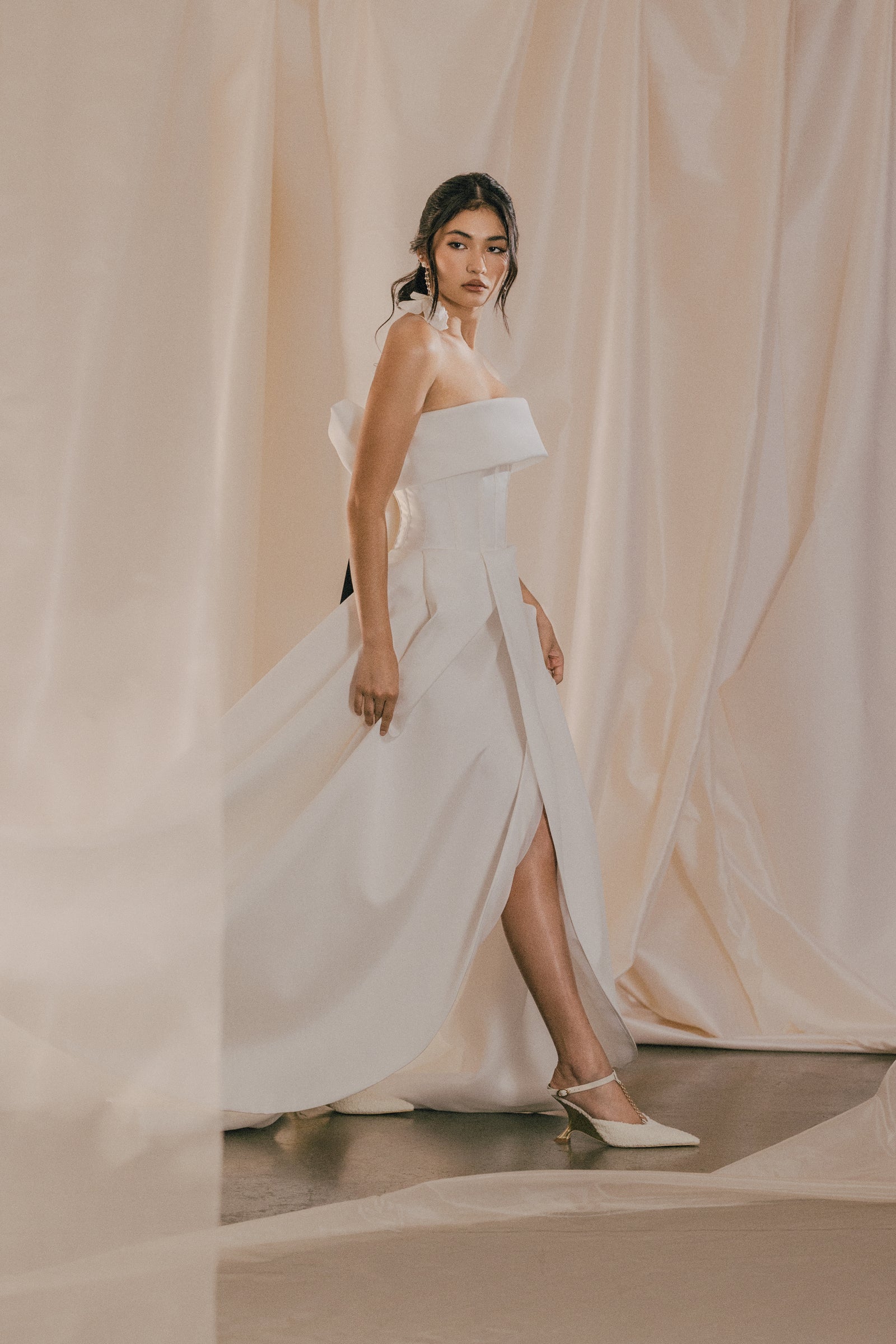 With the combination of our playful hemlines and speciality in fabric manipulation techniques, each piece exudes joy and charm, inviting brides to indulge in the magic of their special day.